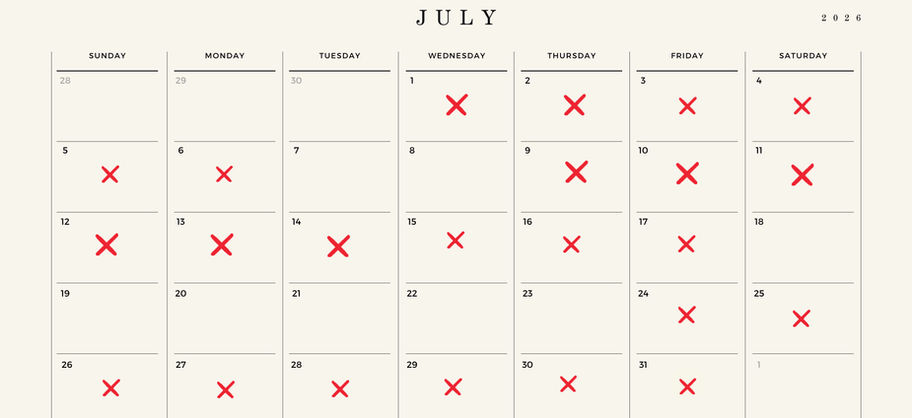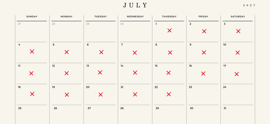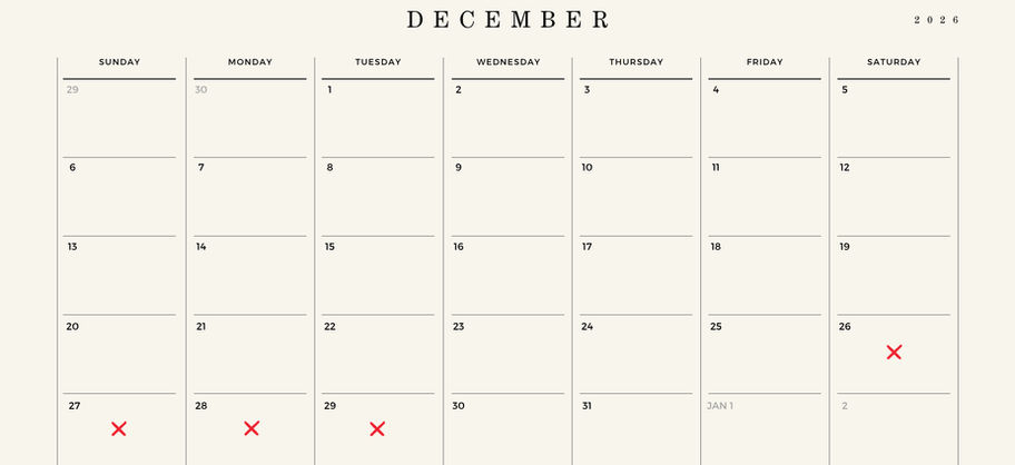 1 June – 31 August + 10 December – 15 January