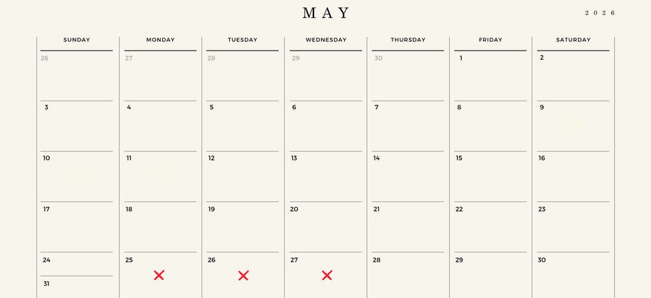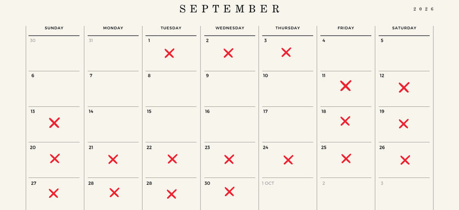 16 January – 31 May + 1 September – 9 December